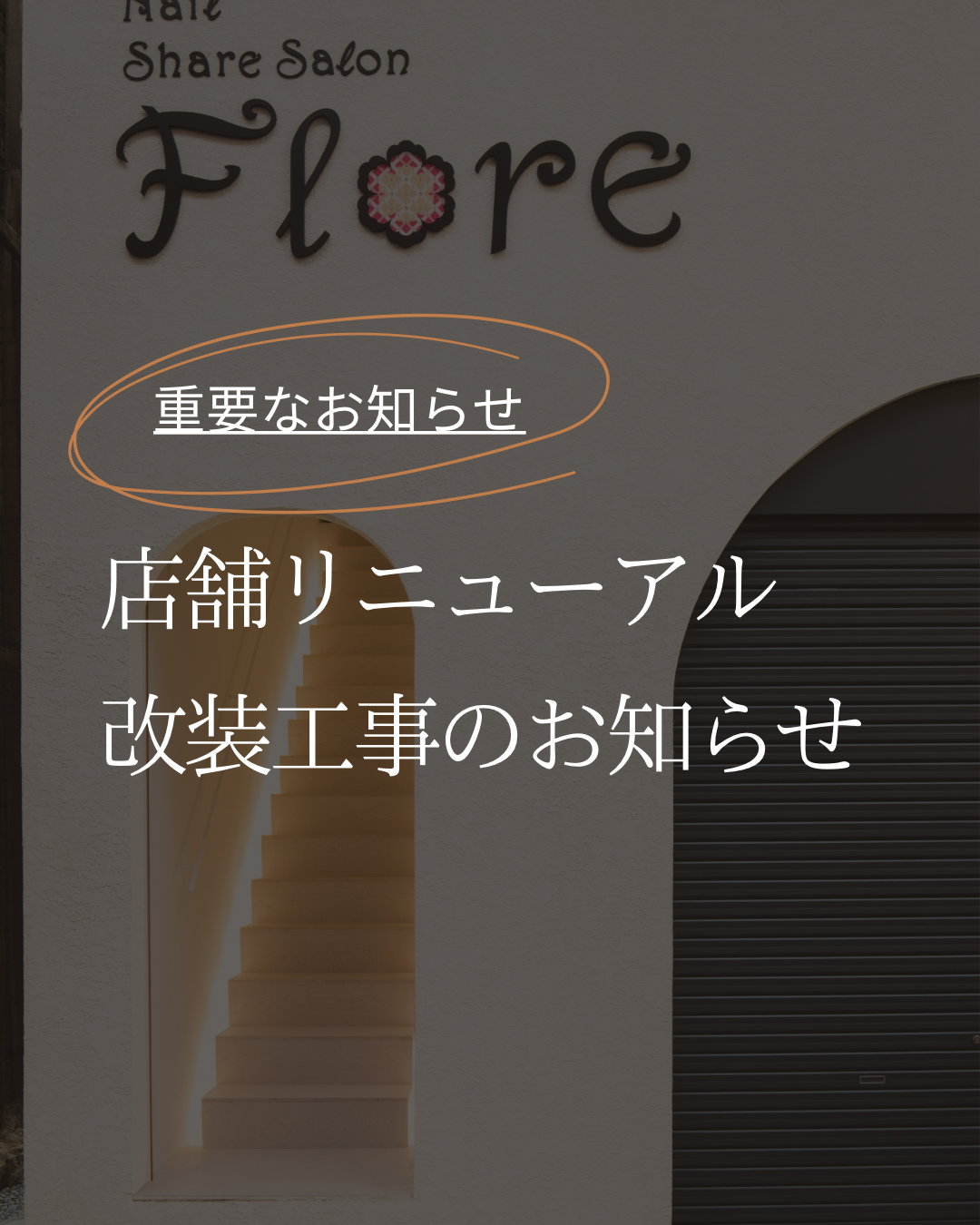 #重要なお知らせ#店舗改装工事#リニューアル工事#ネイリスト#エクステ#アイリスト#残席状況#シェアサロンフロール#ネイルシェアサロンフロール#sharesalonflore#空堀商店街#からほり#松屋町#ネイルブース#レンタルブース#時間貸し